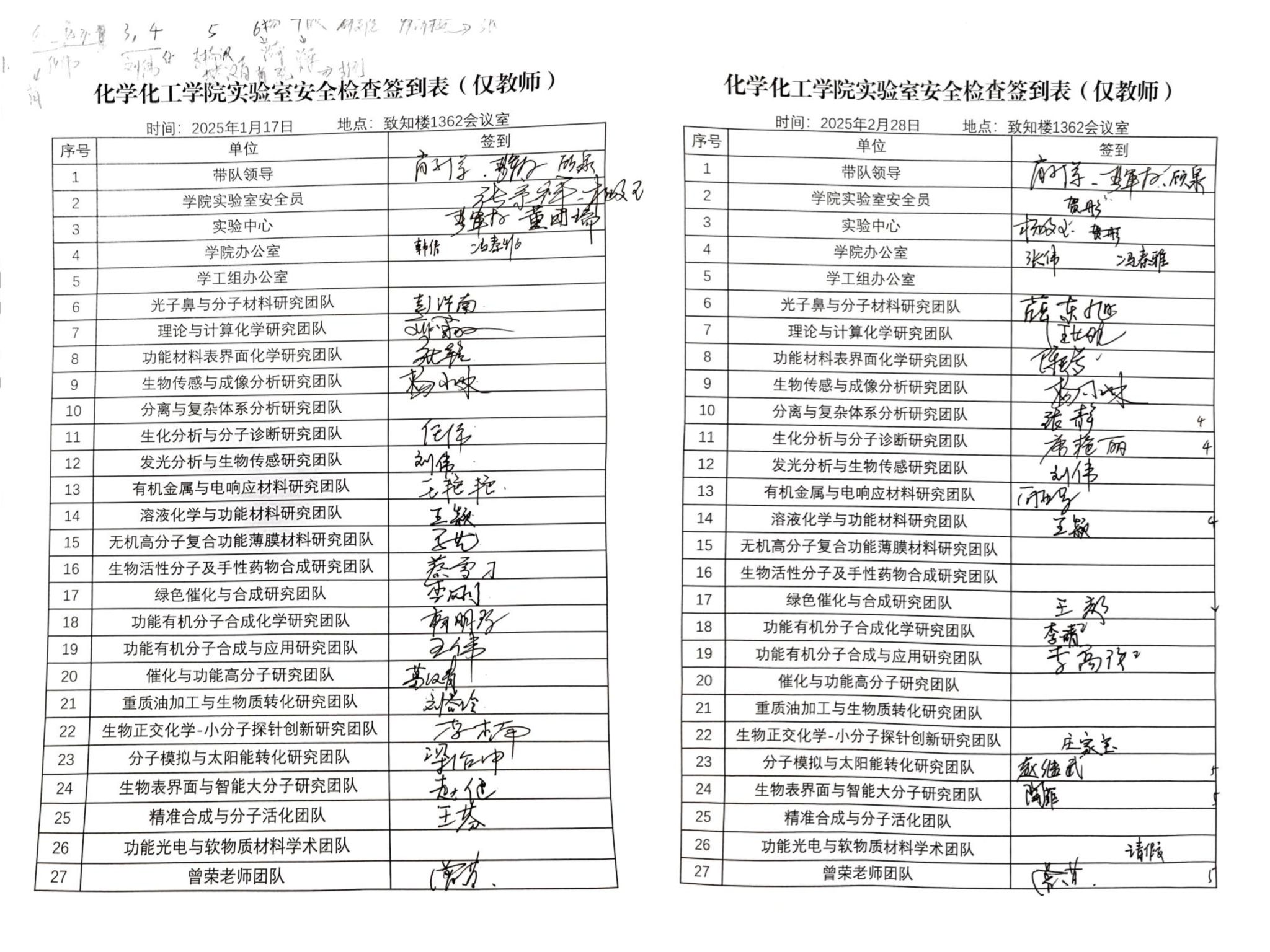 组织了2025年第1、2次实验室安全检查工作,力求全方位排查隐患,筑牢安全防线。