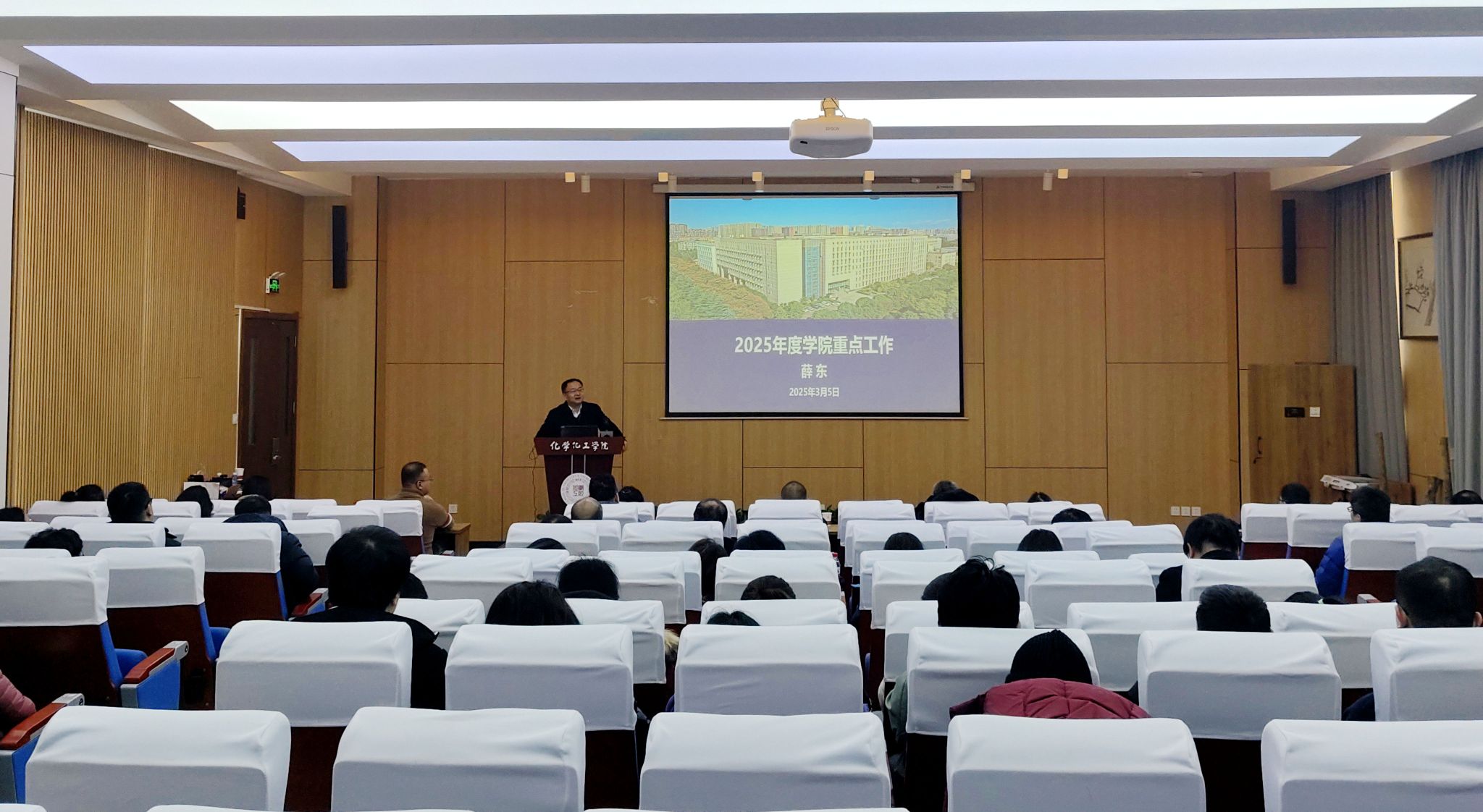 在致知楼1668会议室召开新学期工作部署会暨学院领导班子和处级干部民主测评会。学院党委书记高玲香代表学院领导班子通报了2024年度处级干部民主生活会情况。会议由高玲香主持。