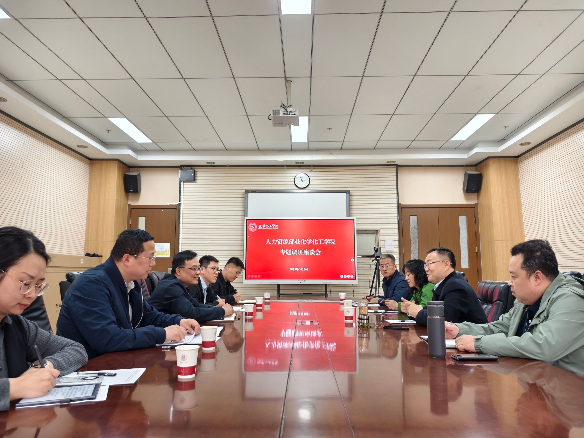 ,围绕学院2025年进人计划完成准备情况和人力资源部工作作风建设情况进行专题调研。学院党委书记高玲香、院长薛东、副院长肖新军、党政办主任张伟及办公室秘书于佳盟参加专题调研座谈会。专题调研座谈会由人力资源部部长路正社主持。