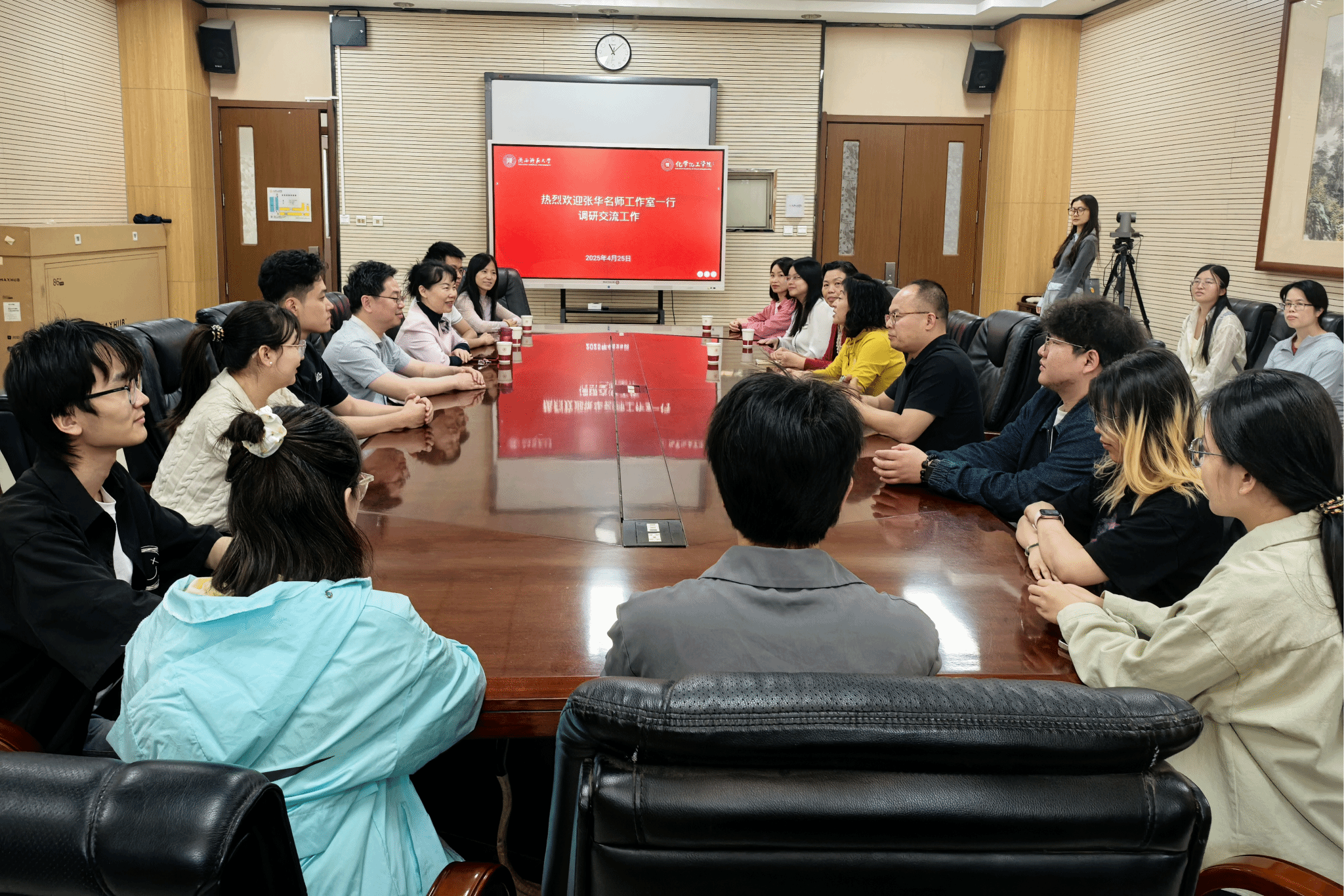 高玲香对张华一行表示欢迎,并从学院发展历史、学科建设和师资力量等方面进行了介绍。贾颍辉介绍了学院研究生专业设置、培养方案和目前毕业生去向等情况。张华介绍了东莞外国语学校的综合情况、师资队伍和岗位需求及待遇,希望能为天使动漫