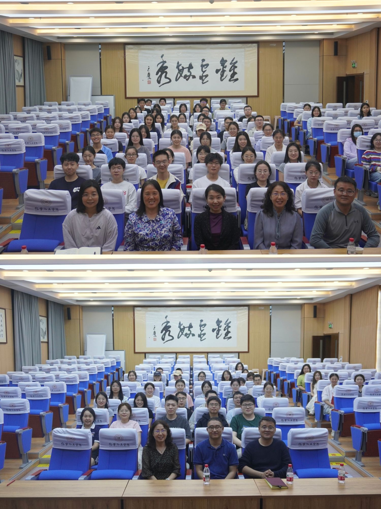 朱晓彧作主题为《从“传达”到“表达”——师范生语言表达能力提升方法与策略》的报告,由陈亚芍教授主持。朱晓彧基于丰富的教学经历以及平时授课中同学们常提出的问题,以“声音、沟通、语商”三大维度为主线,结合生动案例与实操技巧,系统阐述了语言表达的核心要素及提升路径。她指出,教师应将声音作为核心武器,平时注重音色的温暖悦耳、语调的抑扬顿挫、语速的张弛有度以及音量的精准调控,通过科学发声训练与情感注入,使声音成为传递知识、感染学生的有效载体。朱晓彧还通过模拟课堂互动、家校沟通等场景,向同学们示范了如何运用停顿强调、重音突出、节奏变化等技巧增强语言感染力。