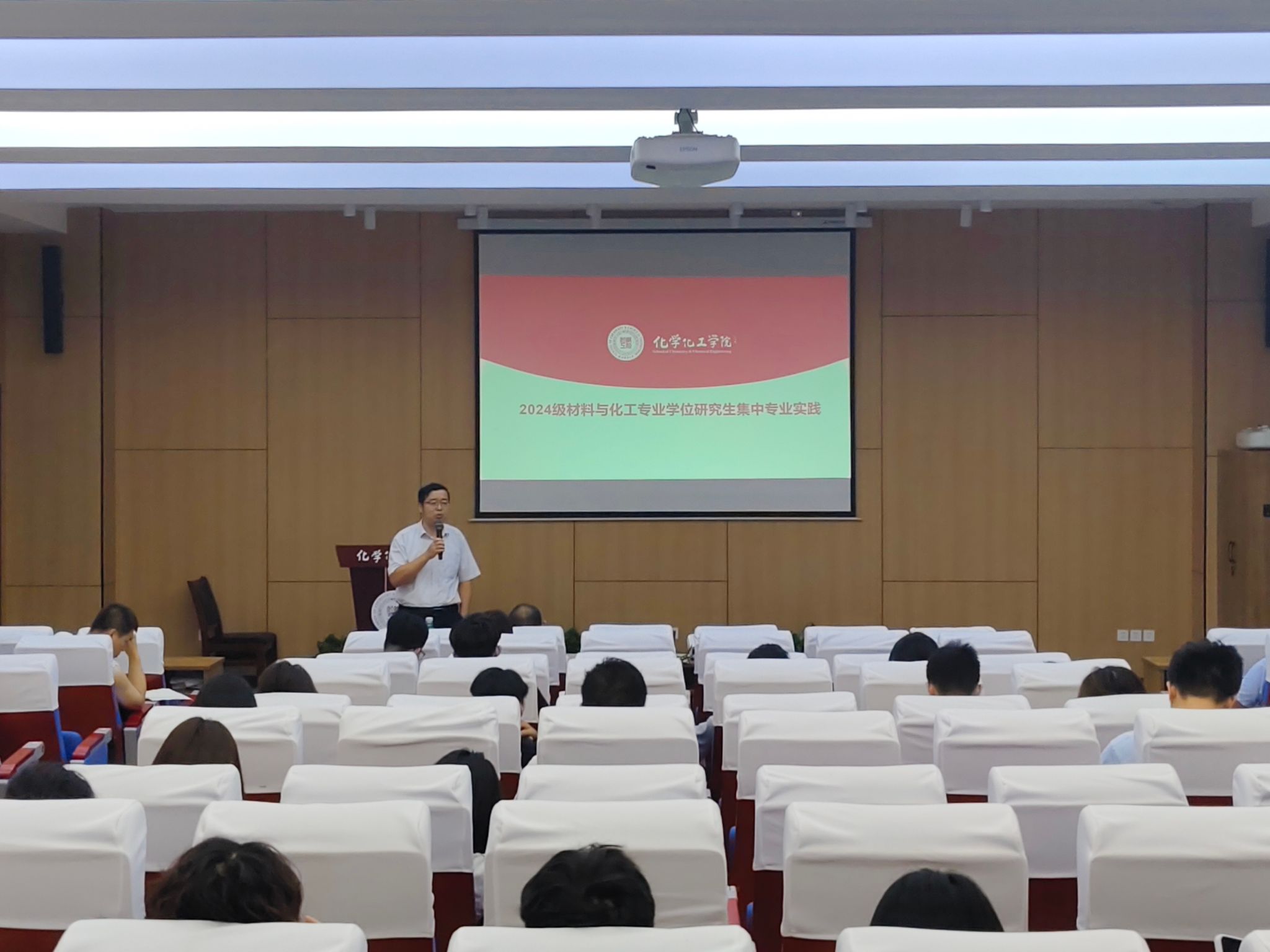 材料与化工专业硕士研究生集中专业实践的整体安排、具体任务与目标要求进行了详细说明。他谈道,专业实践是工程类硕士培养的必修环节,旨在突出专业学位培养特色,推动产教深度融合,希望同学们珍惜集中专业实践机会,了解行业,深入企业,实现专业理论知识向工程实践能力的跃升。