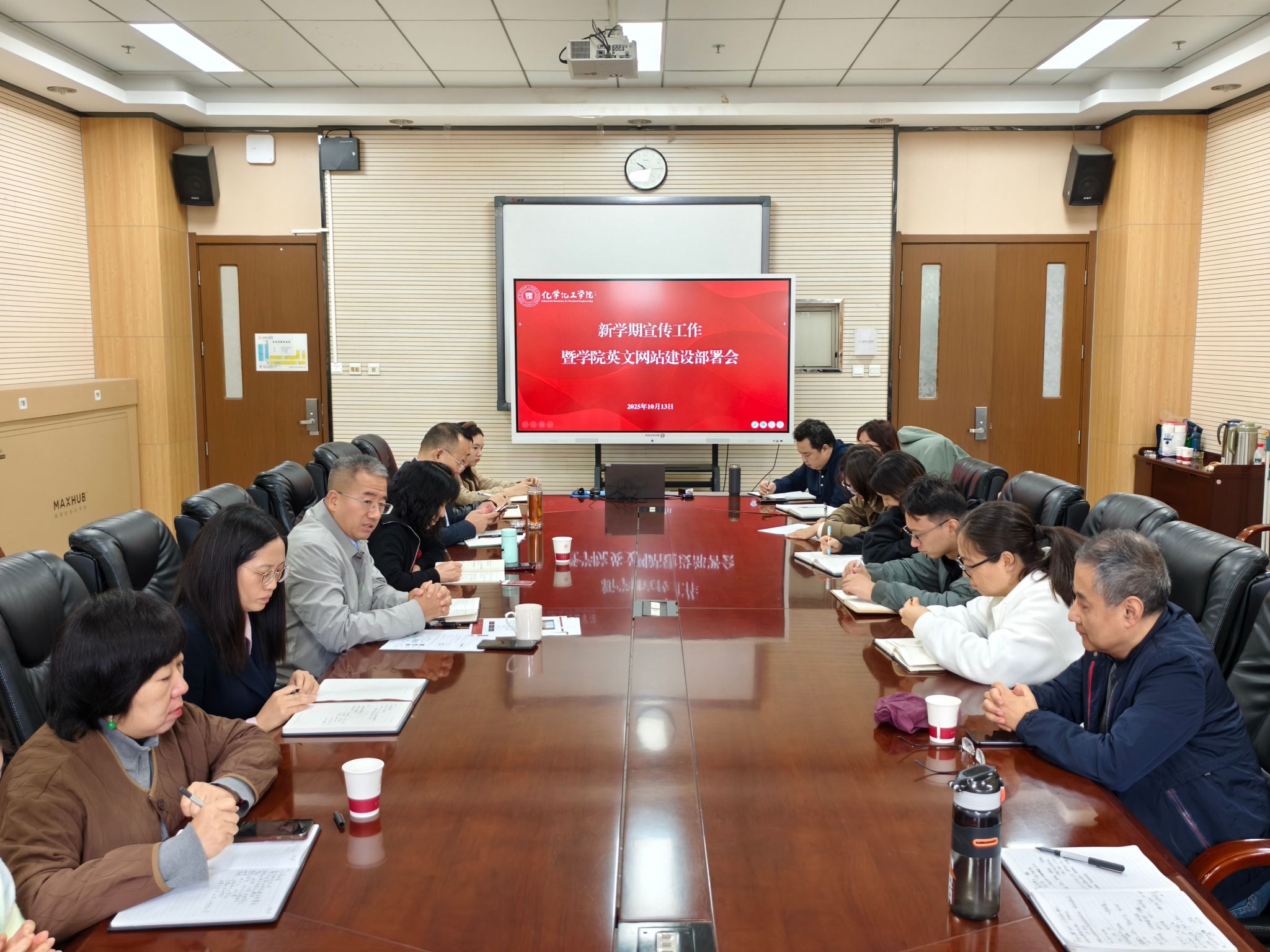 新学期宣传工作暨学院英文网站建设部署会在致知楼1362会议室举行。党委书记高玲香、党委副书记贾颍辉、副院长肖新军出席,学院党政办、学工组、新概念传感器与分子材料研究院等 20 余名党务行政管理人员参会,会议由肖新军主持。