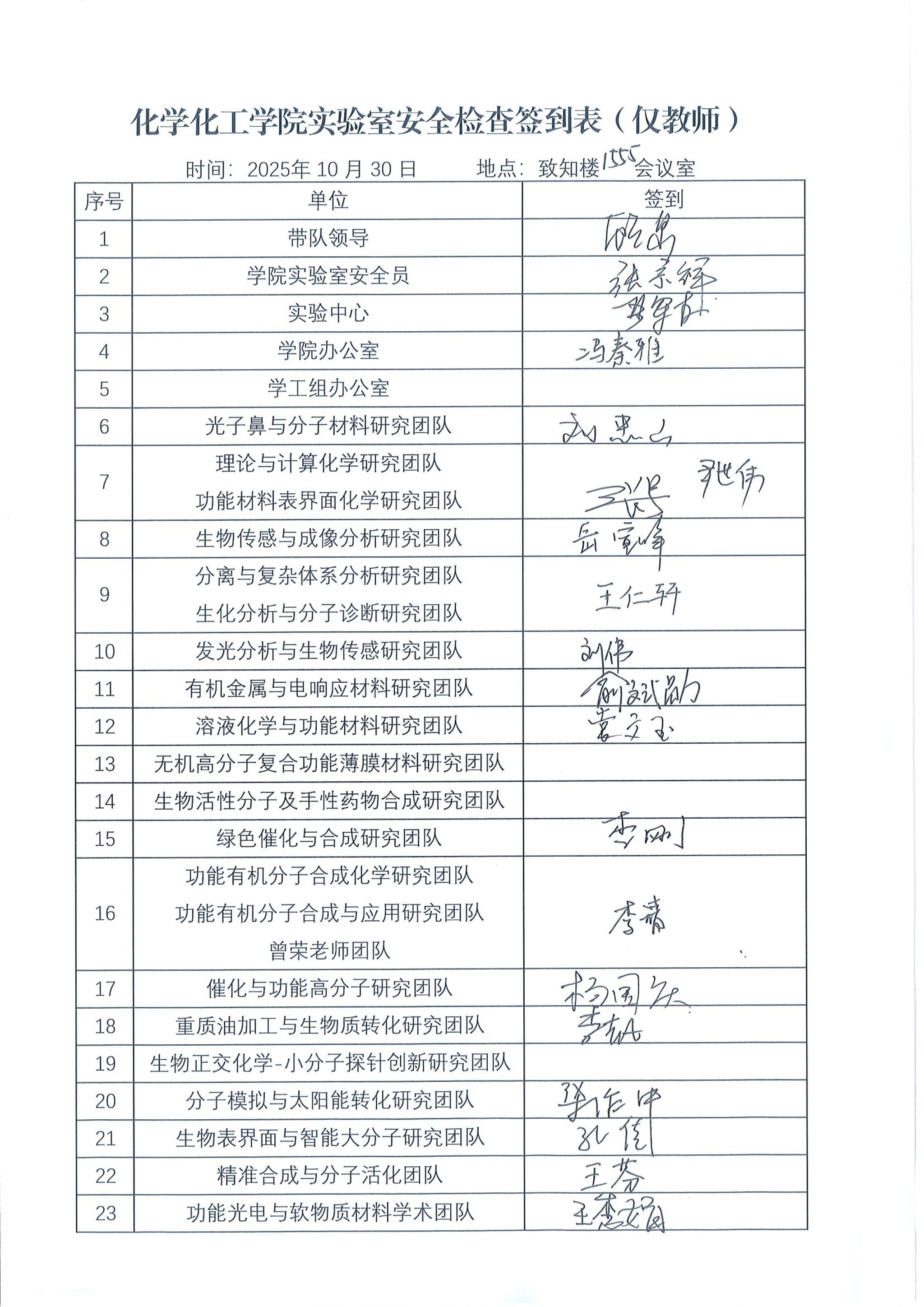 10月30日,学院组织开展实验室安全检查工作。学院副院长顾泉、应用表面与胶体化学教育部重点实验室副主任严军林、各科研团队教师代表和学生代表等40余人参与本次安全检查工作。