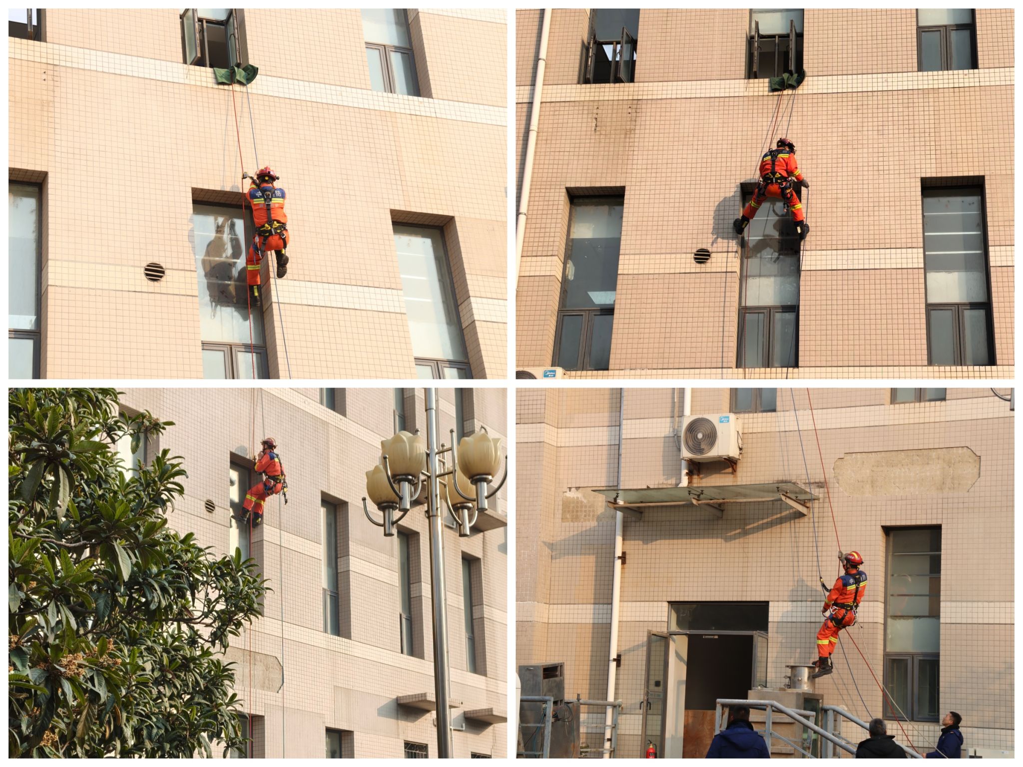 针对高层建筑火灾逃生这一重点环节,学院特别邀请长安区消防大队翰林南路消防救援站队员现场教学高空速降逃生技能。队员王杰详细讲解速降动作技术要领、安全绳锁使用方法及适用场景,示范员陈俊进行现场展示,为师生传授了专业实用的逃生知识,助力师生掌握保障生命安全的关键技能。