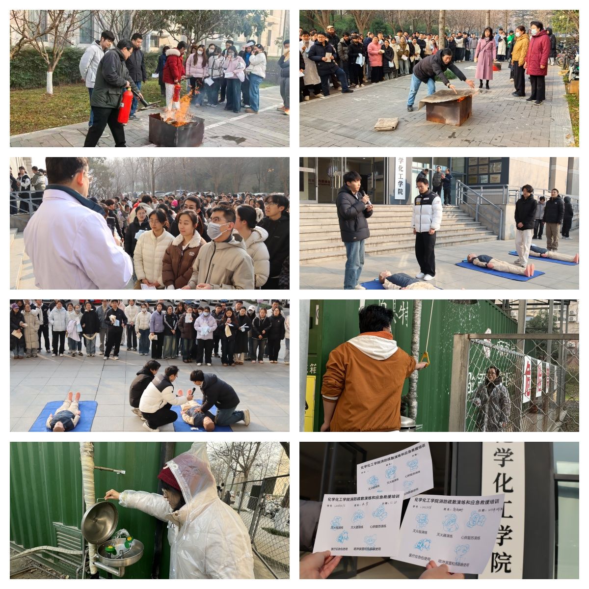 为提升演练针对性与实用性,活动设置了多类应急救助和紧急情况处理项目,包括伤员担架撤离、盐酸打碎应急处置、楼道大火情消防装备灭火、室内被困人员破门救助、实验室小火情消防沙灭火、人员头发着火喷淋处理等。演练开始后,各应急小组严格遵循“统一领导、综合协调、分级负责”的应急处置原则,快速到岗履职,处置科学,有效检验了师生实战应对能力。