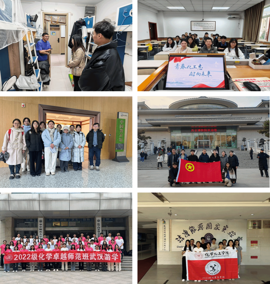 依托化学学科专业优势,学院积极推动班主任工作与科研训练、学科竞赛、研学实践等深度嵌合,让专业引领更具深度、学业帮扶更有温度、实践育人更显力度。一是扎实开展科研训练。班主任着重发挥自身教学科研特长,指导班级同学进行研究型实验,系统指导科研训练,将化学前沿与诚信教育融入学生活动,开展“青春化工志,AI向未来”主题团日活动,激发学生科研兴趣。二是精心辅导竞赛活动。依托班主任的专业优势,积极指导学生参与“挑战杯”“互联网+”等高水平竞赛,在项目培育与科研实践中培养学生的创新能力,共获省级三等奖1项、校级一等奖1项、二等奖2项和三等奖3项,充分展现了班主任工作的育人成效。三是积极探索实践研学。班主任带领班级同学走进烈士陵园、西安博物院等场所开展实践教学,组织带领学生赴中国科学院大连化学物理研究所、华中师范大学、天使动漫