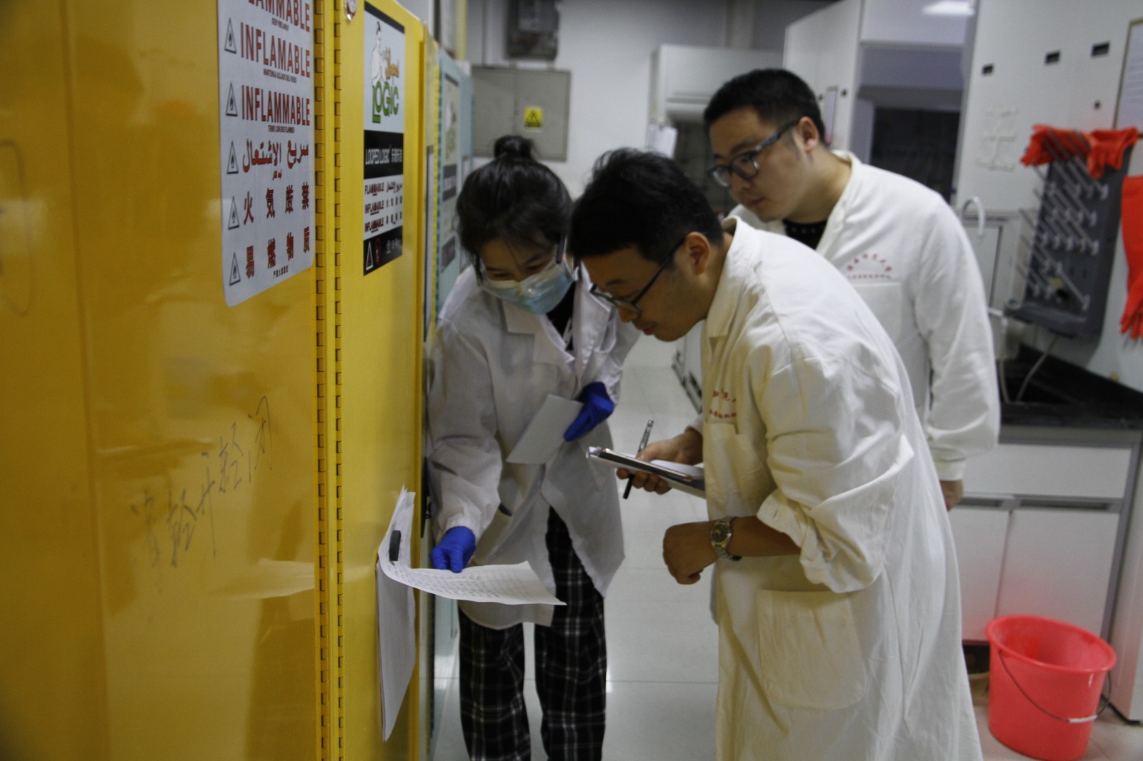 安全工作条例(修改稿)》规定,9月3日下午,学院党委书记吴晋峰,安全工作委员会副主任、科研副院长刘成辉,安全工作委员会副主任、应用表面与胶体化学教育部重点实验室副主任严军林,以及安全工作委员会副主任杨文玉老师带队对学院实验室及公共区域进行检查。检查组成员包括各科研团队教师代表、学生会及学生代表。