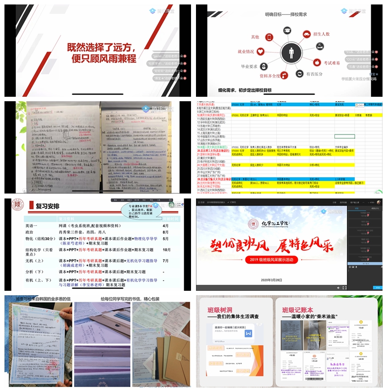 与朋辈手拉手,为学业辅导助力。为了帮助同学们提高学习效率,各年级辅导员组织开展“朋辈话成长”系列云分享活动二十多次,邀请到高年级的优秀学子就教资备考、考研复习、英语提升、专业学习等内容进行交流,引导同学们充分利用“宅家”时光提升自我,安心读书学习。其中,16级师范生的实习就业分享、17级非师范的考研经验分享、18级的专业学习分享、19级的班级风采展示等活动,从学业目标确定、复习备考策略、学习方法改进、班级学风建设等方面介绍了实用有效的经验,受到同学们的普遍欢迎。后期,学院还将逐步建构起各年级全面覆盖、各专业重点突出的朋辈学业辅导体系,为学生未来发展提供持续支持。