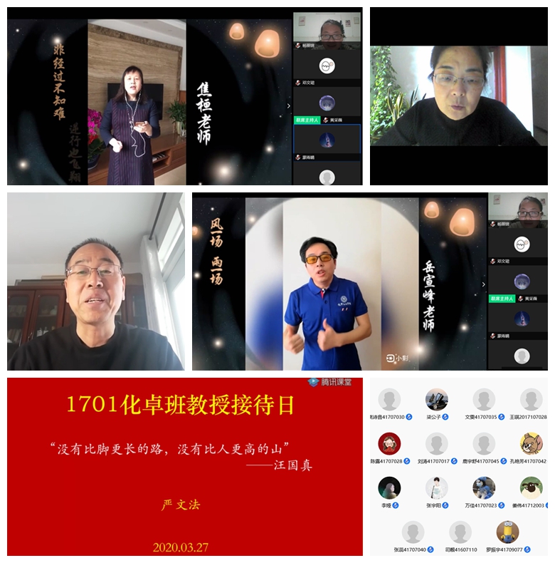 与教授面对面,为专业发展解疑。在疫情防控和在线学习的特殊时期,辅导员老师们通过问卷调研的方式了解学生在专业学习和职业规划等方面的困惑和问题,并将学院长期坚持的“教授接待日”从线下转到了线上,邀请学院领导、专家教授和班主任老师们深入班级开展在线交流活动三十余场。老师们通过网络与同学们分享自己的学习成长经历、激励大家只争朝夕、不负韶华;讲述自己经历“非典”斗争时的感人故事,勉励同学们坚定信心、共克时艰;针对近期在家上学的具体问题给出解决建议,鼓励学生克服困难、静待花开。隔屏不隔爱,看见和蔼可亲的老师们,同学们纷纷畅所欲言,分享自己在家上学的感悟和收获,也向老师们表达了遵守规定在家等待、珍惜时间严格自律的决心。