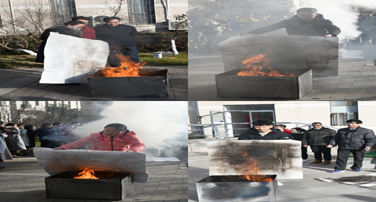随后,组织开展灭火实战演练,保卫处副处长付俊生、消防科长张哲,实验室建设与管理处副处长李召虎,学院教师杨文玉、严军林、王明珍、董团瑞,在致知楼南侧道路,向师生演示了灭火器、防火毯等消防器材的功能及使用方法,并组织各实验室师生代表进行实践操作,有效调动了师生关注消防、参与消防、学习消防的热情。