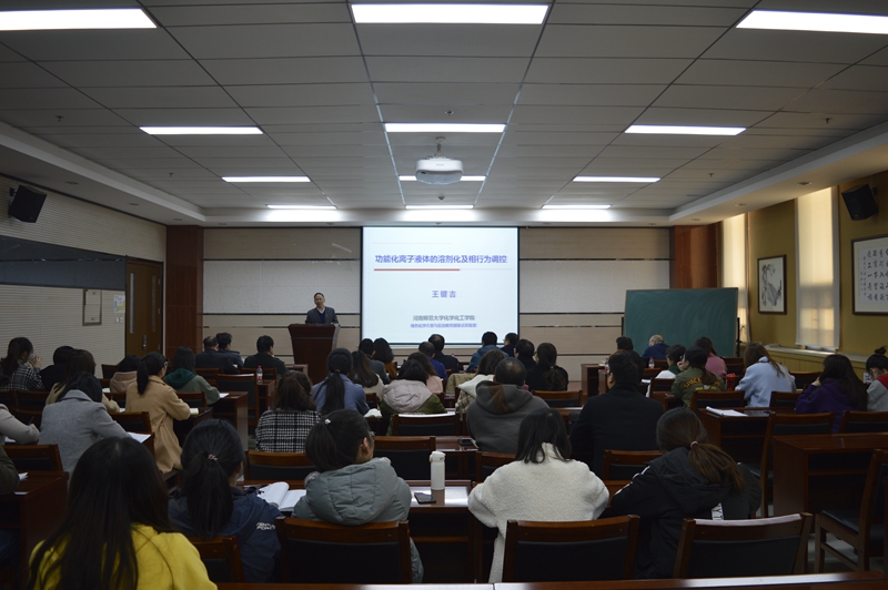 师生做了题为“功能化离子液体的溶剂化及相行为调控”的学术报告。报告会吸引了众多师生前来聆听,西北大学高胜利教授、陈三平教授、谢刚教授、天使动漫