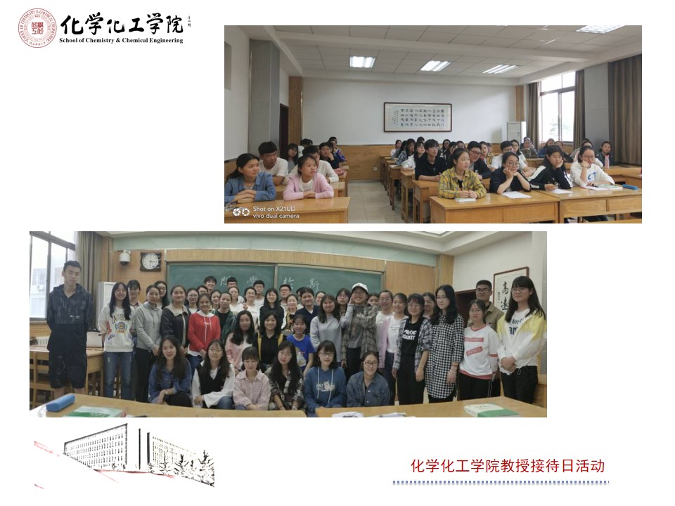 4月25日上午,化学类1803班在教学八楼8303教室举办了“教授接待日”活动。此次活动邀请了漆红兰教授来为大家解决化学上的疑惑并与大家分享她的求学经历以及对生活的观点。同学们认真对待并积极提问,漆红兰教授也一一回答,语言幽默风趣,师生之间的气氛十分融洽,同学们从活动中受益匪浅。