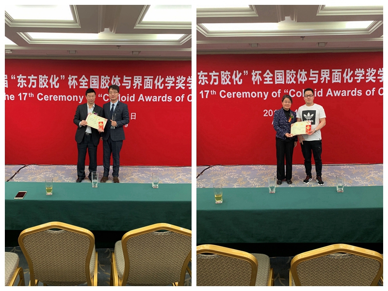 光子鼻与分子材料研究团队房喻教授课题组的博士研究生常兴茂和祁彦宇分别获得了“东方胶化杯”全国胶体与界面化学研究生优秀成果一等奖和三等奖,刘小燕副研究员受邀出席了颁奖典礼。颁奖典礼上,刘小燕作为受邀嘉宾对获奖学生致颁奖寄语,并做了精彩的邀请报告,介绍了课题组近期科研成果;常兴茂同学汇报了博士阶段的科研成果。与会嘉宾对光子鼻与分子材料研究团队所取得的研究成果给予高度肯定。