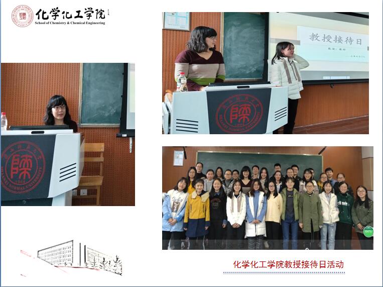 11月22日,2017级化学二班邀请了石先莹教授参加教授接待日活动。交流活动主要围绕教师职业发展,同学们提出自己的疑问或观点,石老师一一解答。石老师认为,既然选择读师范就要早早培养自己的授课能力,练习黑板字,培养自己的责任心;想要给同学把知识讲清楚,需要用心备课;想要自己上台不那么紧张,需要多多锻炼,培养自己的信心,同学们受益良多。