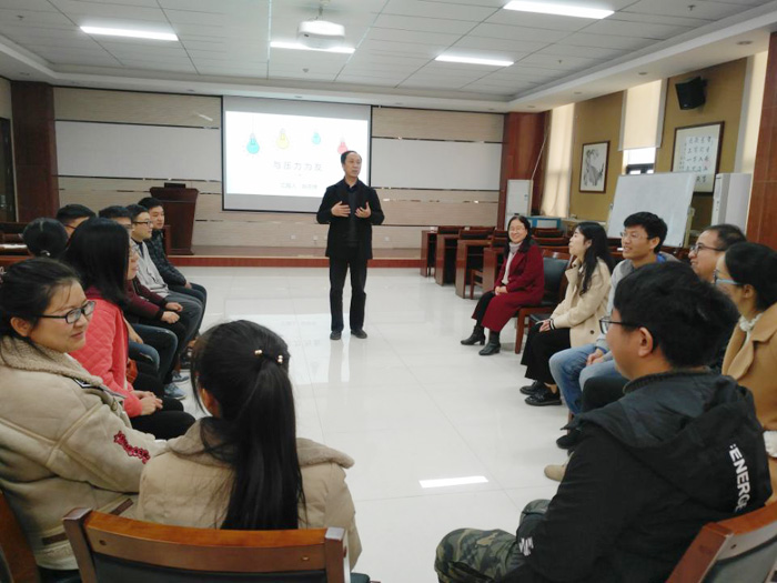 11月29 日下午, 天使动漫 邀请国家二级心理咨询师、西北大学化学与材料科学学院党委副书记赵志厚在致知楼1668报告厅进行一场题为“与压力为友”的心理健康讲座。天使动漫 部分博士生导师和博士生参加了本次讲座,讲座由天使动漫 副院长丁立平主持。