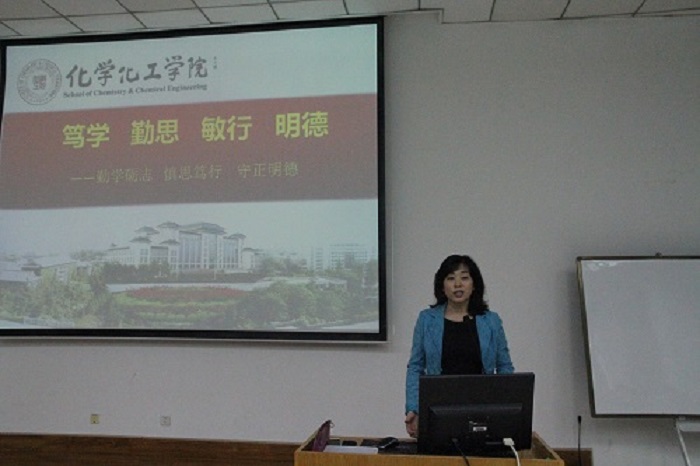 勤学励志、慎思笃行,守正明德的优良学风,强调了学院以为社会输送才德兼备的人才为宗旨。随后,高玲香教授向同学们抛出问题“为什么学习化学?”,而她则以介绍学院院徽“化学——我们的生活,我们的未来”切入,提出,化学是人类发展的根基,是创造新物质最多的学科,因此我们化学人要有对学科的高度认识,要有学科自豪感,更要有敢为人先的科研态度。接着,高玲香教授从学院发展、学科定位目标、学院师资队伍、学科优势特色及学院科研平台建设这几个方面对学院做了基本介绍。并从科研育人、课程育人、教研育人、学术育人、全员育人、实践育人、文化育人、环境育人八个角度与同学们分享了学院的育人理念,帮助大家理解学习了天使动漫