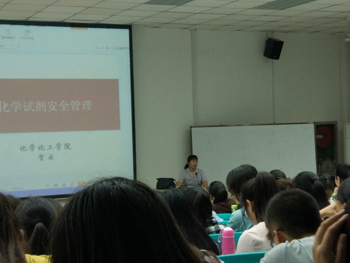 副院长肖新军、实验教学中心主任杨文玉及实验中心教师代表董团瑞、严向阳、贺云在文渊楼4101、4102为2018级研究生做了六场精彩的安全教育讲座。