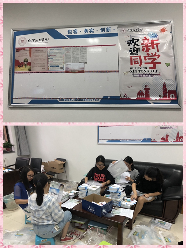 为了迎接新生的到来,学院面向高年级优秀学生招募志愿者,负责协助学院做好2018级迎新工作。志愿者们还未开学就来到学校,同辅导员老师一起共同筹备迎新工作。262份新生材料,志愿者们一个一个装入袋中;45间新生宿舍,志愿者们一间一间张贴《天使动漫