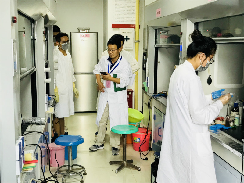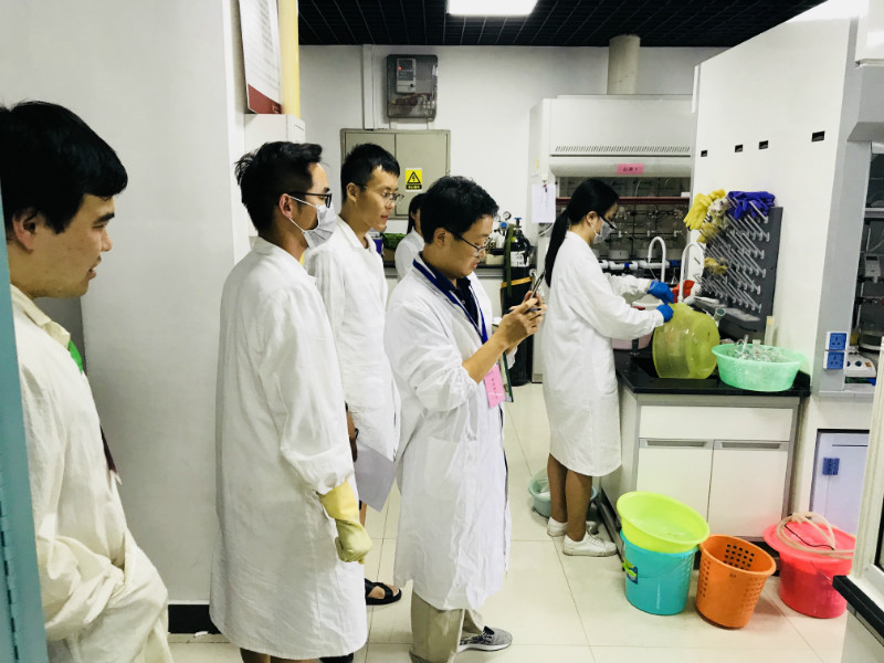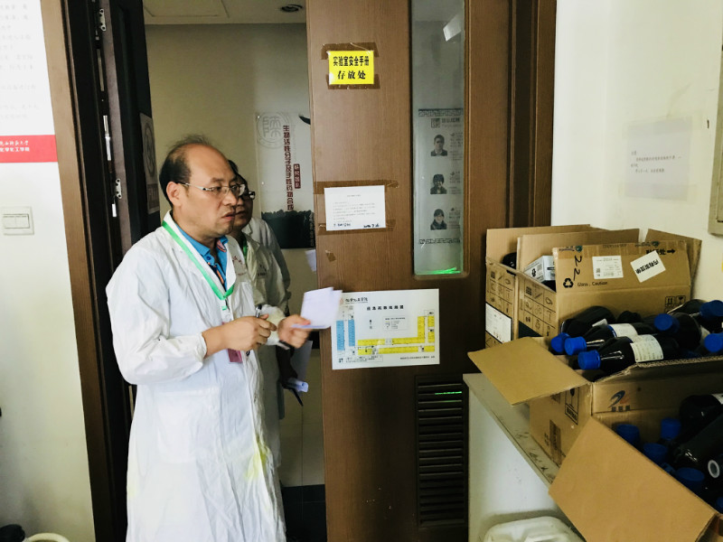 检查组通过实地查看、亲身操作,对实验室废弃物、危化品、防火防盗以及安全设施等方面进行了全面检查,尤其对之前要求整改的项目进行了重点检查。经过检查,教学实验室整体环境整洁;大多数科研实验室地面、桌面无积尘,多数实验人员能够遵守实验操作规范。但是,在检查中也发现仍然有个别实验室存在安全隐患,主要发现的问题有:实验室学生未按规定穿着实验服;烘箱无高温标识;废瓶子堆积太多;实验区、休息区未分开;试剂瓶子盖子未盖;钢瓶未固定;实验室物品摆放杂乱;冰箱内药品、食品混放;总电源附近放置高温设备等。检查组针对存在的安全隐患进行认真排查,对发现问题现场记录,并要求立即整改。