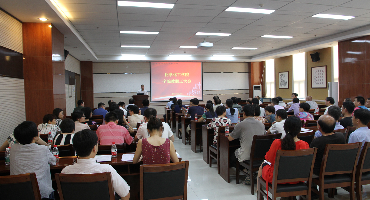 在致知楼六层报告厅(1668)召开全院教职工大会。学院全体教师,党政领导、学院办公室、学工组办公室以及实验中心办公室人员参加了会议。会议由学院行政副院长肖新军主持。
