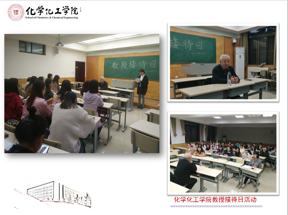 11月2日下午,章竹君教授应邀参加2016级化学创新实验班的教授接待活动。章老师对同学们在考研、就业、科研等方面提出的困惑一一解答。在问答过程中,年过八十的章老师侃侃而谈,不仅回答了同学们的问题,还对当代大学生所欠缺的稳打实干精神发表了自己的看法,同学们都深有感悟。活动最后,同学们用热烈的掌声表达对章老先生的感激之情,学生代表发表了对本次活动的感言,并表明未来将积极承担社会责任、努力实现个人梦想的决心。