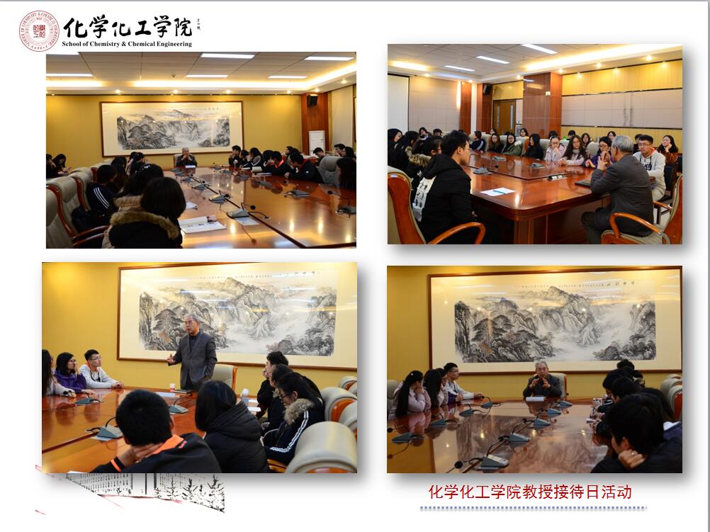 11月12日,房喻教授应邀参加2015级化学二班的教授接待活动。房老师结合个人经历,就现代教师应当具有的从业精神进行了系统全面地讲解。随后,房老师指出,大学生应当在大学期间培养自己的责任心,提升自身品味。针对同学们“如何保持对教学工作的热情”的问题,他结合当下教育中普遍存在的问题,对同学们工作时应如何保持教学工作的热情提出了自己的建议与看法。最后,房老师表达了对同学们寄予的深厚期望,鼓励同学们勇敢开创自己的未来。
