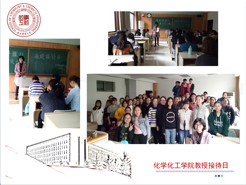 10月30日下午,石先莹教授应邀参加了2016级化学二班的教授接待日活动。石老师讲述了自己的成长经历和艰苦奋斗的青春岁月。她通过分享自己的故事,教导同学们如何面对挫折,如何克服困难。结合自身经历与教学经验,解答了同学们关于如何对待选修课的问题。石老师认为无论是上选修课还是必修课,同学们首先要端正学习态度,在最该奋斗的年龄努力积累知识,为以后的教师生涯做足准备,这样才能按自己的意愿做自己喜欢的事。