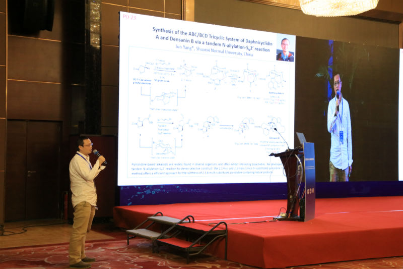 下半场的报告由中科院上海有机化学所俞飚教授和Malaya大学的Noorsaadah Abdul Rahman教授主持。国立台湾大学的杨吉水教授、日本Kyoto大学的Yoshiji Takemoto教授、南开大学陈弓教授、香港浸会大学梁湛辉教授、西北大学栾新军教授分别作了荧光染料、不对称Michael加成、C-H活化、有机催化、脱芳构化反应等方面邀请报告。