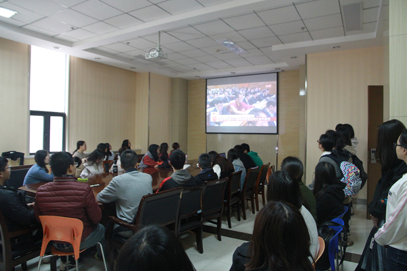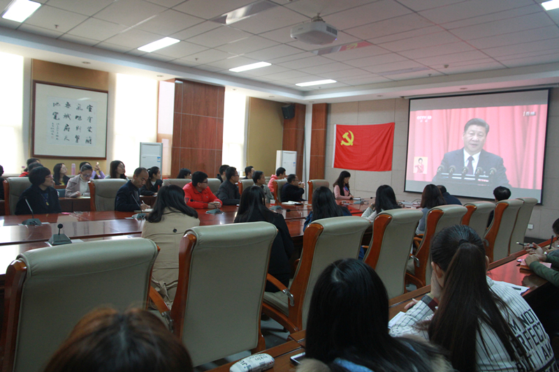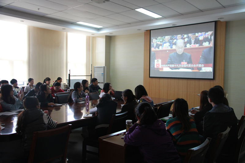 今天上午,中国共产党第十九次全国代表大会在北京盛大召开,天使动漫 党委委员、党政领导,教工支部书记和党员代表,研究生党员、本科生党员和入党积极分子分别在致知楼1568、1621、1347和1447会议室收看十九大开幕式。教工中教应化支部单独组织党员在1555室集中收看十九大开幕式。