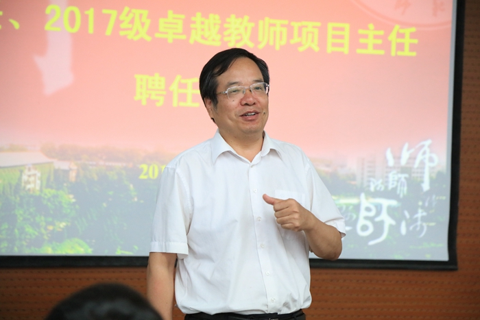 历来重视本科生教学工作,从2015级本科生开始,学院就聘任了陕西省教学名师和国家自然科学基金优秀青年基金项目获得者担任班主任和项目主任。为本科生选聘“名师”担任班主任,是一件非常有意义的事情。“名师引路”是贯彻落实“把本科生教育作为学校人才培养首要任务”的具体措施,利于对本科生开展精细化管理,形成全员育人新格局。希望同学们能够珍惜机会,在师大优良学风校风激励下不断奋进,号召同学们在老一辈知名学者的精神感召下努力奋斗,向知名学者们学习如何做人、做事、做学问,打好通识教育基础,致力融会贯通发展,努力成长为德智体美全面发展的社会主义合格建设者和可靠接班人。