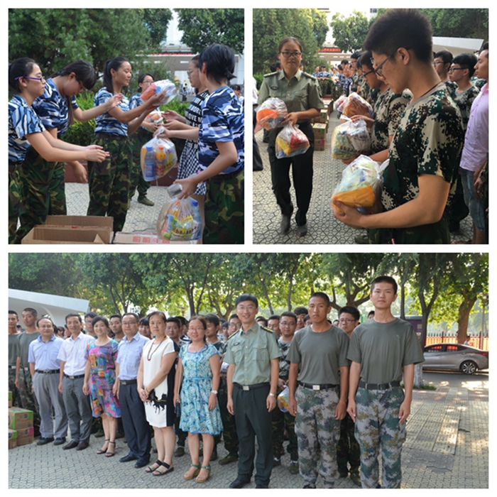 学生军训任务的教官与带队干部,受到了大家的热烈欢迎。
