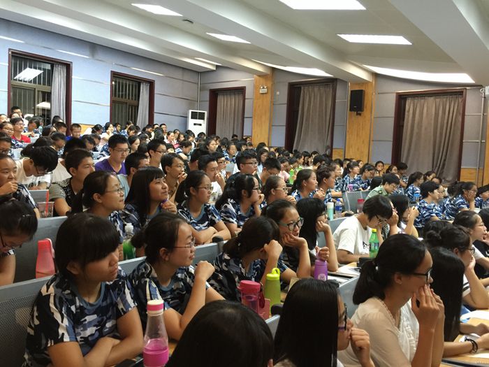 薛东教授首先向同学们全景展示了学院人才培养方面优良的软硬件条件,并对学院教师的教学科研情况进行了全面介绍,让同学们对未来的课程学习与科研实践充满了期待。报告中,薛东教授回顾了自己的求学生涯,以切身经历告诫同学们,不论是在学习中还是生活上都需要坚持梦想,敢于拼搏,不断地挑战自我。随后,薛东教授又从甲午战争留下的思考讲到民族复兴的希望,引出科技创新的重要性,从爱国角度激发了同学们为中华民族崛起而读书的激情。薛老师还通过数名优秀院友的成长故事,激励同学们要立志高远,追求卓越,争做学历高、知识丰富、气质高雅的“高富雅”。薛老师勉励同学们,要明确自身的人生方向,不盲目跟风,不人云亦云,因为一个人只有想清楚了自己的方向时,才有拼搏的动力。他鼓励同学们把人生目标细化,让一个个小目标铺就通往成功的康庄大道。讲座最后,薛东教授还向同学们推荐了《化学简史》、《化学与社会》、《自控力》三本书籍,勉励同学们读书以广识,积学以修身,用实际行动践行我校“抱道不曲,拥书自雄”的学风。