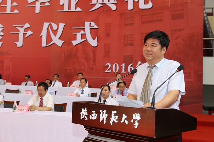 1979级院友张克强荣膺我校第四届“杰出校友”(学前与基础教育类)。在6月28日举行的2016届本科生毕业典礼上,党委书记甘晖、校长程光旭为张克强校友颁发了“第四届杰出校友”纪念牌和奖章。典礼上,张克强作为校友代表表达了对母校的深切眷恋和无限感激,表示将把西安中学打造成陕西师大的优秀生源地和优秀教学实习基地,竭尽全力支持学校的建设发展和学弟学妹的成长成才。同时,张克强校友还向毕业生寄语,希望同学们走上工作岗位以后,加强沟通和交流,形成师大团队,达到共鸣,以实际行动,放飞梦想,走向成功。