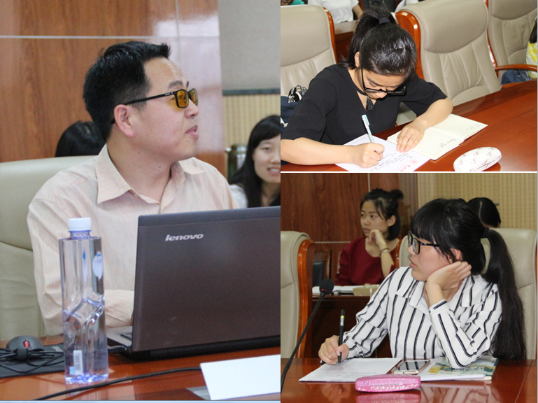 副教授严文法副教授做客2013级化学1班教授接待日。在活动过程中,严文法副教授结合自身的教学经历,针对同学们今后在教师专业能力发展的过程中可能出现的问题发表了自己的看法。在如何看待现今师生关系方面,他指出,要建立良好的师生关系,必须做到秉承公平,民主的态度,真诚地对待学生,热爱学生,热爱教育事业,拥有奉献精神。他结合自己在教学中的亲身经历谈到,课堂内外都要给学生传递永不放弃,永不言败的精神。要对学生的关注度,持以公平公正的原则,注意给予中下层次的学生更多关注。要注意与学生多沟通交流,触摸到学生的灵魂,走进其内心世界,让学生真切感受到老师和学校对其的关爱。就如何看待当前课程改革的问题,严文法副教授提到,要注意课改的方向是否真正达到了教育所需要的目标,授课方式应在传统讲授式的基础上加以创新改进,不可舍本逐末。在是否应当在初二开设化学课程的问题上,他认为,教学要符合学生的自然发展规律,不要揠苗助长。最后,严文法副教授就如何与问题学生交流沟通,说课的方法和技巧等问题也给出了合理的建议,分享了自己的经验,还对中美两国的教育方式做了对比,现场气氛热烈。