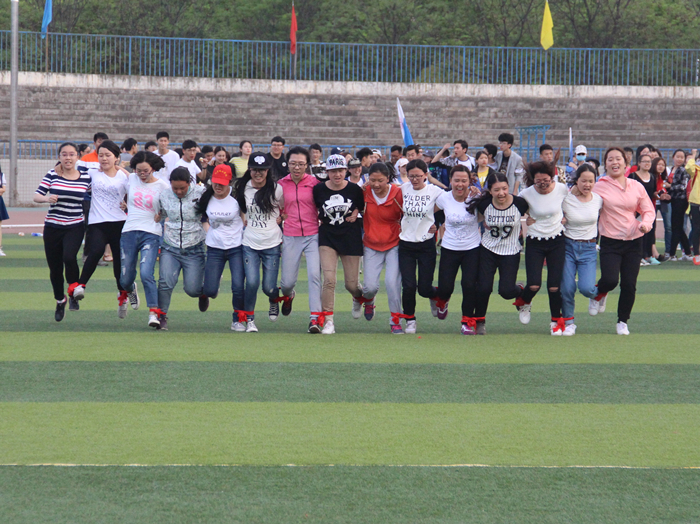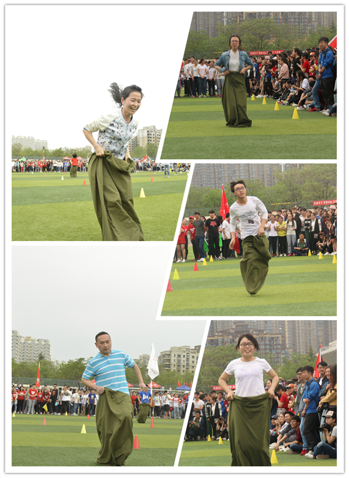 师生更是同心协力,勇创佳绩。在动力火车项目中,刘伟、严景丽老师与同学们并肩作战,随着一声哨响,他们步调有序,前进迅速,配合默契,将其他队伍远远甩在后面,摘得桂冠。在负重接力比赛中简亚军老师举重若轻,奔跑迅速,严景丽老师更是巾帼不让须眉,连超同小组两名对手,最终获得了第三名的成绩。在活泼的袋鼠跳比赛中,李超群老师,魏灵灵老师灵活迅速,大家在欢快的跳跃中轻松获得第六名。团结协作比赛中,面对其他学院男生小组,天使动漫