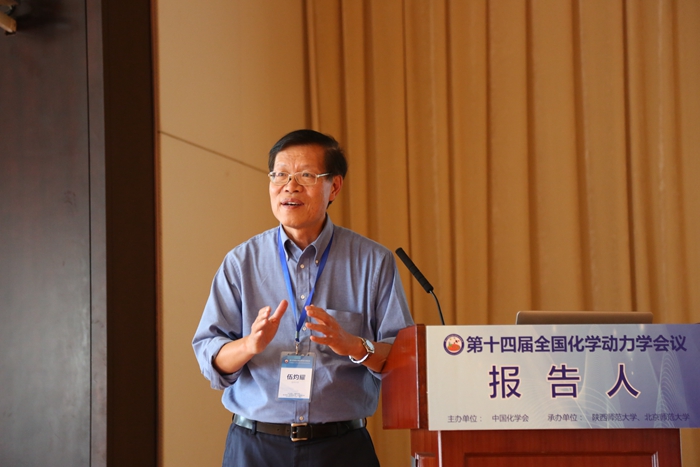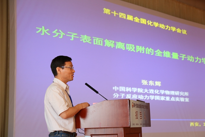 第十四届全国化学动力学会议期间,共举行25场大会报告。8月22日上午,继开幕式后,会议安排的4个大会报告随即在陕西宾馆陕西大会堂举行。上半场大会报告由第十四届全国化学动力学会议共同主席、北京师范大学方维海院士主持,台湾中央研究院原子与分子科学研究所刘国平院士作了题为“Vibrational-Induced Steric Effects in Bimolecular Reactions”的报告;中国科学院大连化学物理研究所张东辉教授作了题为“多原子分子的表面解离吸附量子动力学研究”的报告。