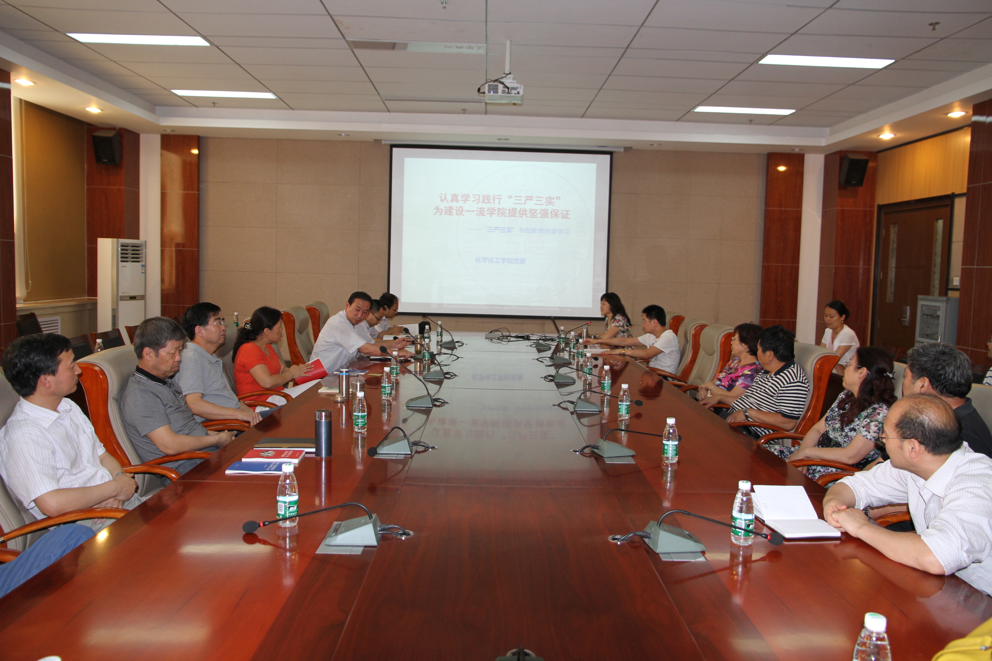高玲香首先传达了学校“三严三实”专题教育工作要求和甘晖书记“三严三实”专题教育党课的精神,并对学院的“三严三实”专题教育工作做了安排部署。高玲香分别从开展“三严三实”专题教育的重大意义及背景、准确理解“三严三实”的深刻内涵、如何践行“三严三实”,建立风清气正的一流学院等四个方面进行讲解,要求全院所有干部要坚决贯彻“三严三实”要求,把“三严三实”体现到行动上、落实到实践中。