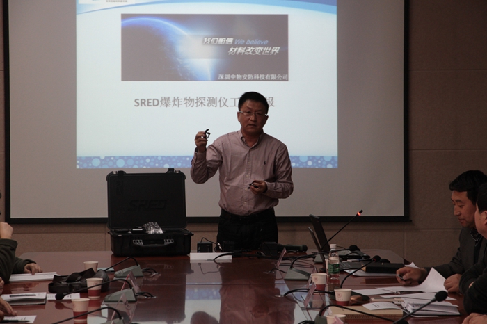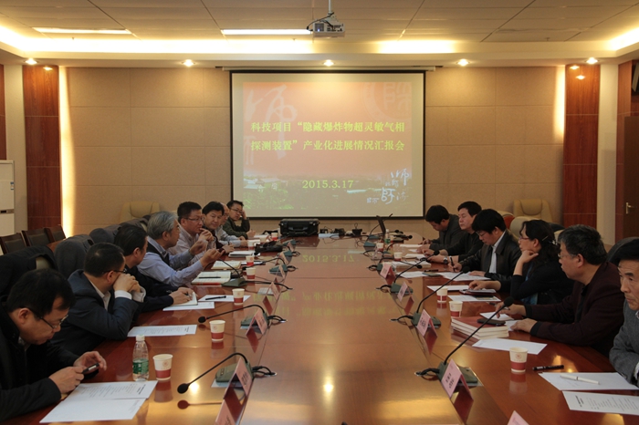 课题组成员代表房喻教授出席会议。院长高子伟,党委书记高玲香,副院长薛东,副院长焦桓,资产经营有限责任公司总经理马进福,副总经理田皓、梁高全,物理学与信息技术学院副院长辛云宏,科技处处长吴晓军、副处长张卫兵,南方办事处主任闫永昌,宣传部部长孔祥利参加了会议。会议由马进福主持。 蔡文斌首先从“隐藏爆炸物超灵敏探测装置”的生产背景、生产过程、市场价值、企业未来发展方向等几个方面系统地汇报了该项目的生产情况,随后向与会人员展示了产品。