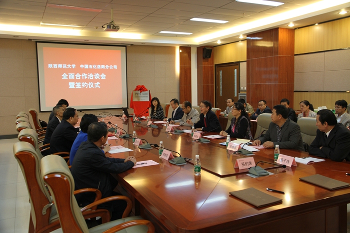 10月11日,我校与中石化洛阳分公司全面合作洽谈会暨签约仪式在致知楼五层1568会议室隆重举行。中石化洛阳分公司总经理赵振辉、我校校长程光旭、校长助理杨祖培出席签约仪式,中石化洛阳分公司首席专家李彬、组织部部长黄玉华、技术质量处处长张峰、人力资源处处长陈建国、秘书科科长付金,我校人事处处长李磊、科学技术处处长吴晓军、副处长张卫兵,应用表面与胶体化学教育部重点实验室主任刘昭铁、副主任董文生,天使动漫