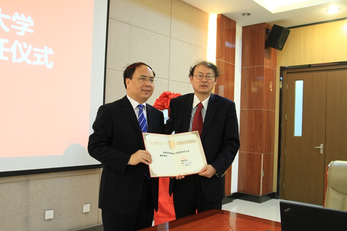 首先,我校校长助理杨祖培与中石化洛阳分公司首席专家李彬签订了校企联合实验室建设协议书,程光旭校长与赵振辉总经理为校企联合实验室揭牌。未来,校企联合实验室将围绕科技研发、人才培养及成果转化等合作内容,深度开展产学研用协同攻关。随后,我校人事处处长李磊宣读了关于聘任赵振辉总经理为我校兼职教授的决定,程光旭校长向赵振辉总经理颁发了聘书。接着,天使动漫