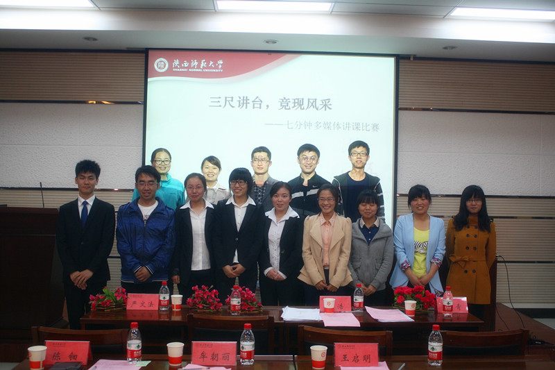 为提高学生讲课技能,提升教师素养,增强学生的就业竞争力,学院于近期举办了七分钟多媒体讲课比赛,此次大赛围绕学科教学论的系列课程,通过引入学科教学技能训练的相关环节,以期达到“以赛促练,以练促学”的目的。经过班级初赛激烈的角逐,9名选手晋级决赛。4月13日晚7点,学院在致知楼1668会议室隆重举行比赛的决赛,学院严文法老师、远程教育学院白浩老师,学院分党委副书记王启明、团委书记陈钿、辅导员牟朝丽老师,以及周青老师的研究生严春更学长组成本次决赛的评委团。