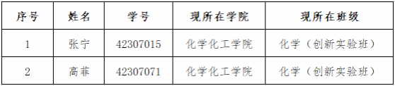 根据教务处《关于做好2023级“人文科学试验班”“理科试验班”中期考核及二次选拔工作的通知》和《天使动漫 2023级化学笃学班中期考核和二次选拔实施办法》,学院对2023级化学笃学班二次选拔报名的同学进行了考核,现将结果予以公示,公示时间:2024年9月24日-9月26日。天使动漫 2名学生通过考核,结果如下(按照学号顺序排序):