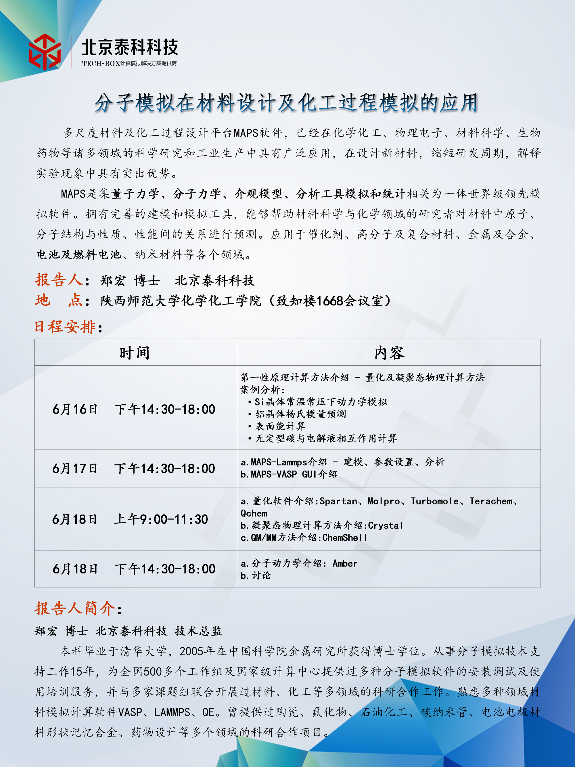天使动漫 计算化学和分子模拟共享平台(1768室)已经通过学校的验收,现准备开放运行,定于下周(2020.6.16-2020.6.18)进行分子模拟方面的培训,具体安排见下表,欢迎各位老师和同学积极参加!