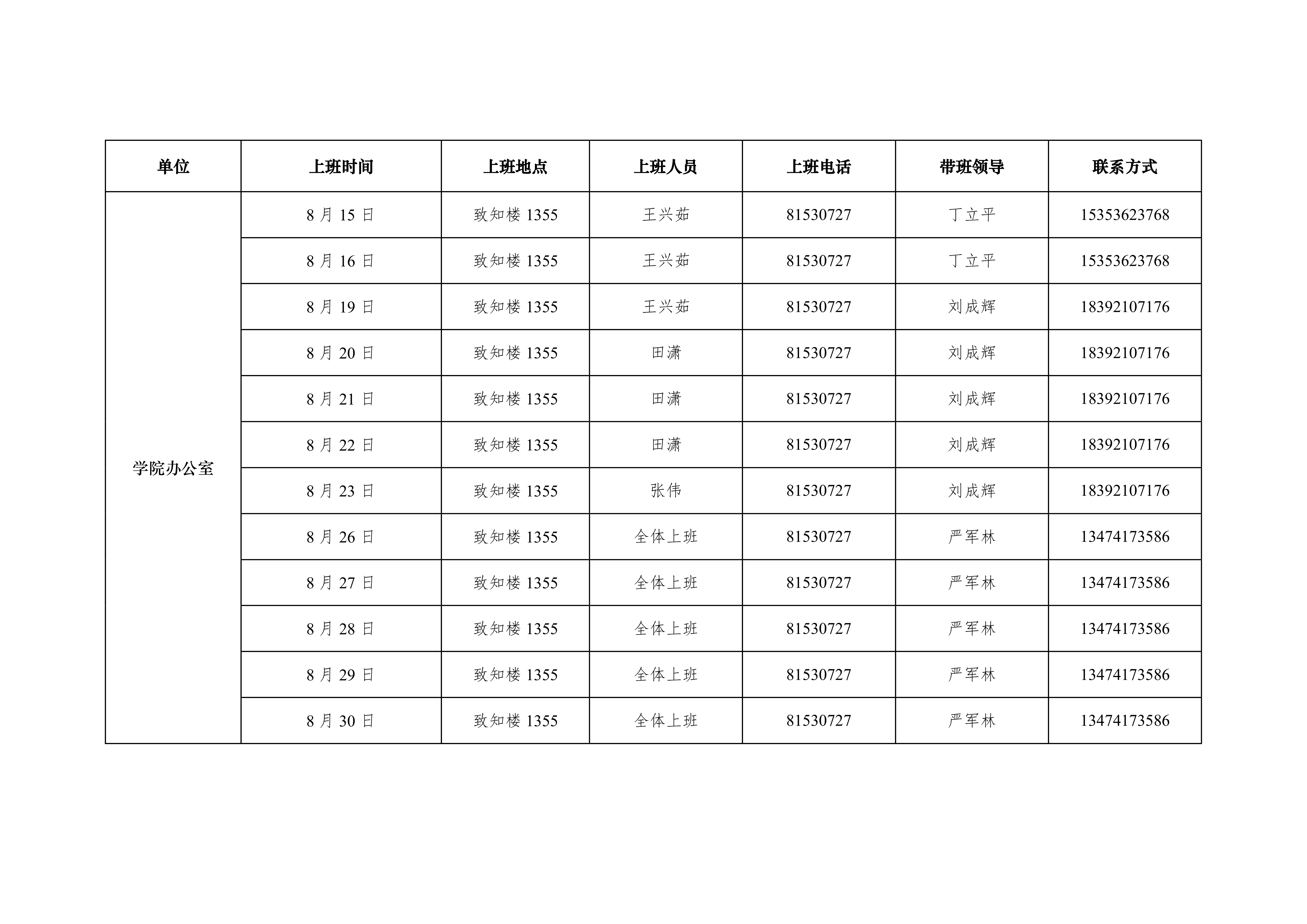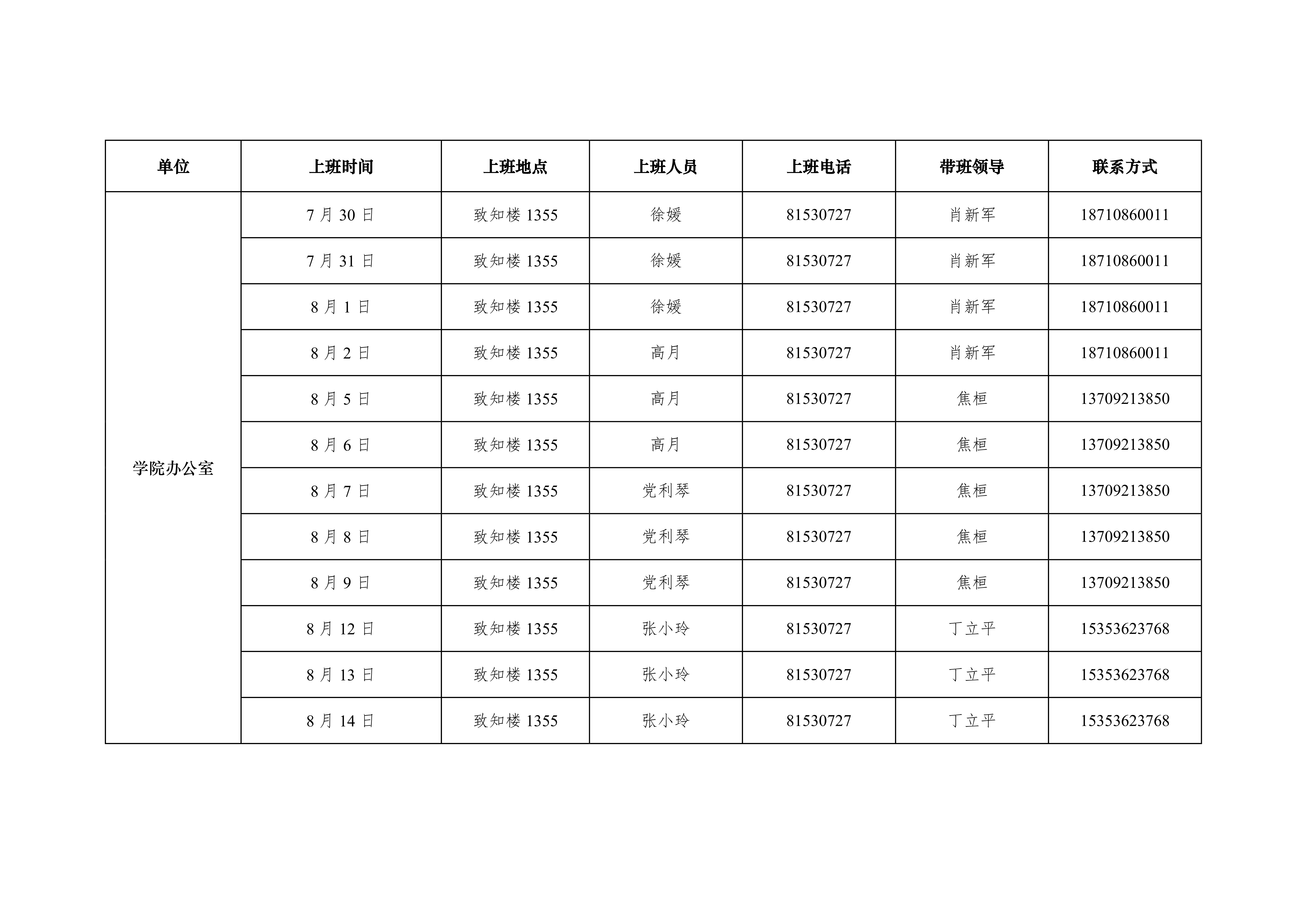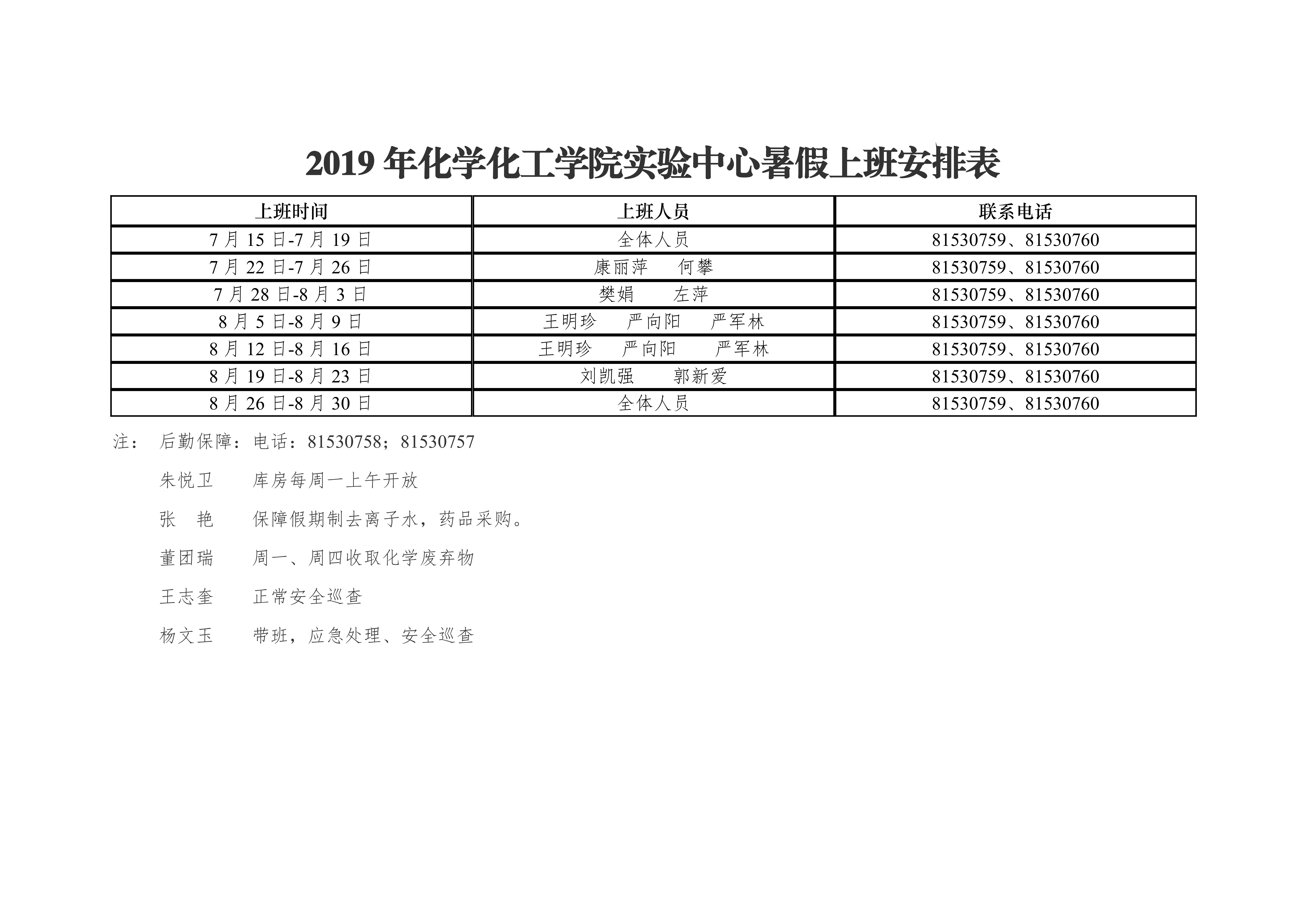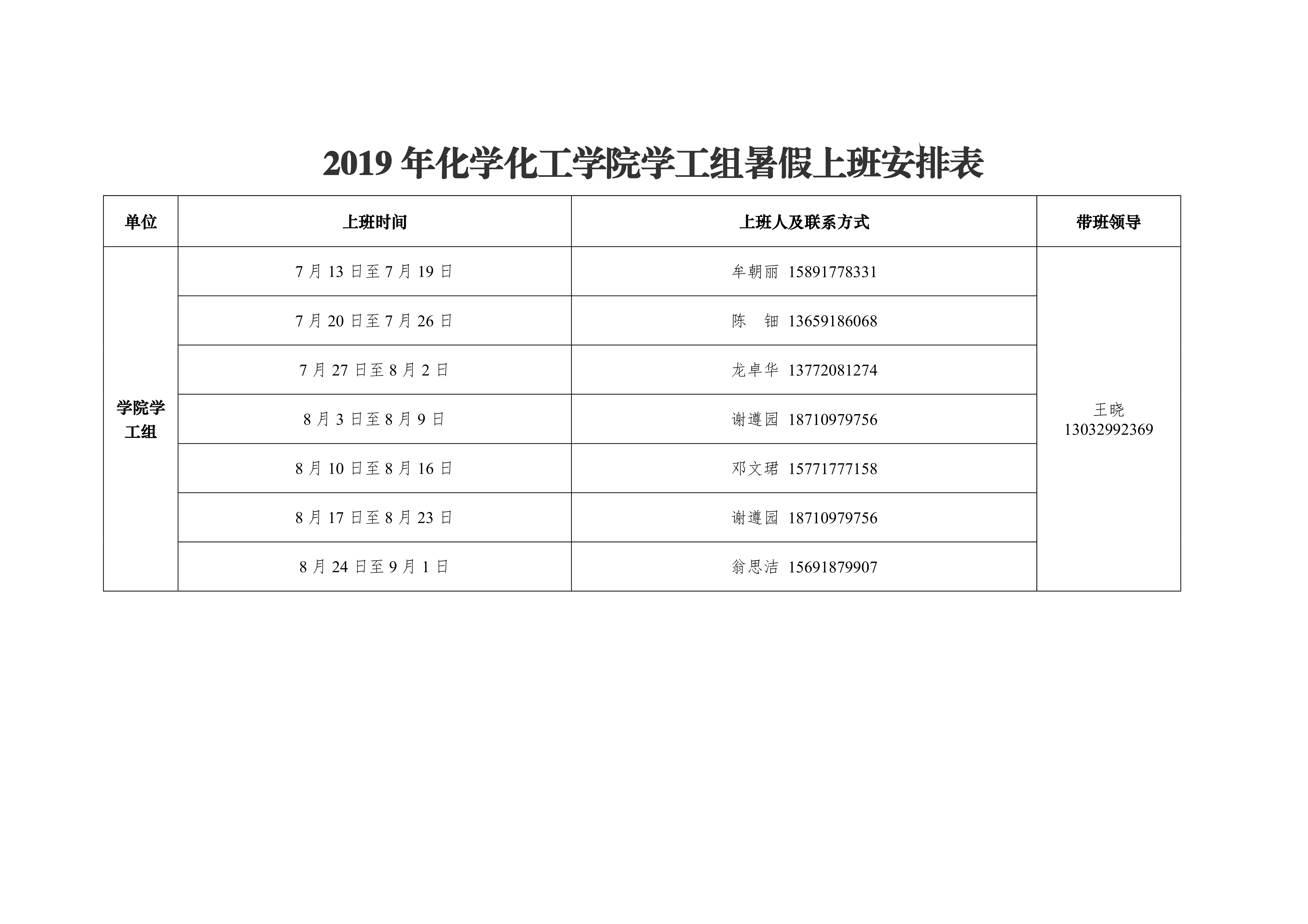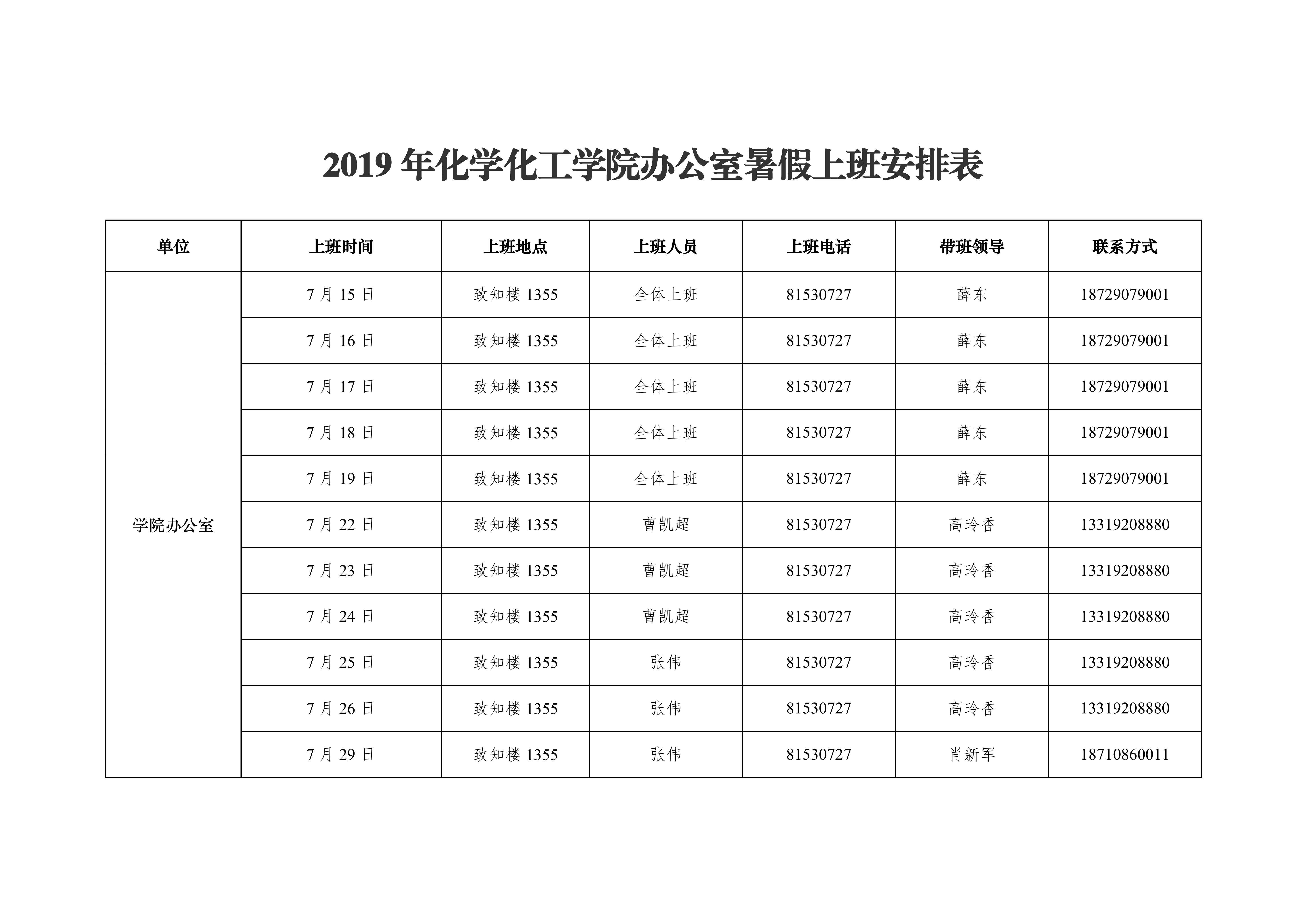 2019年天使动漫 办公室暑假上班安排表