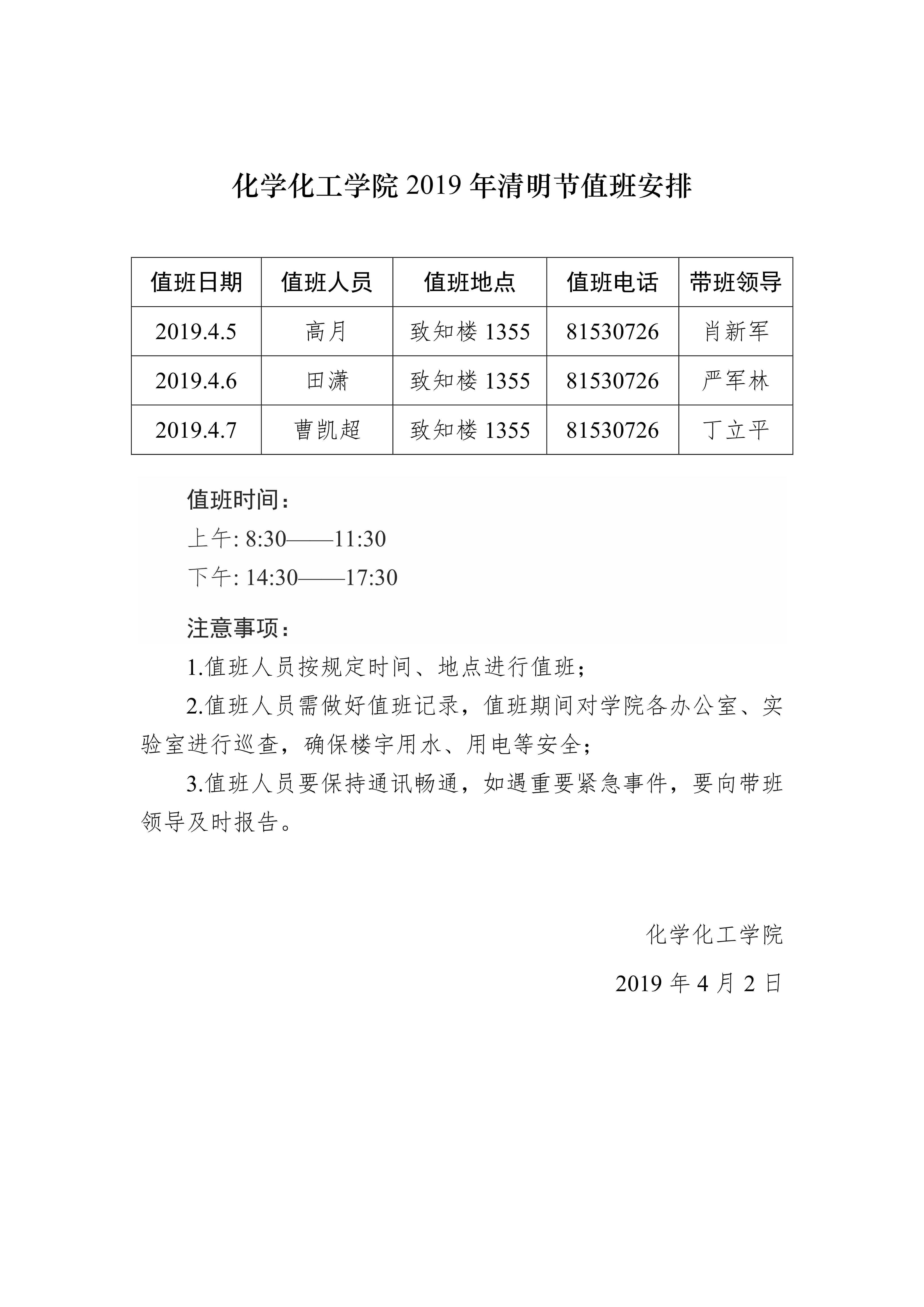 天使动漫 2019年清明节值班安排