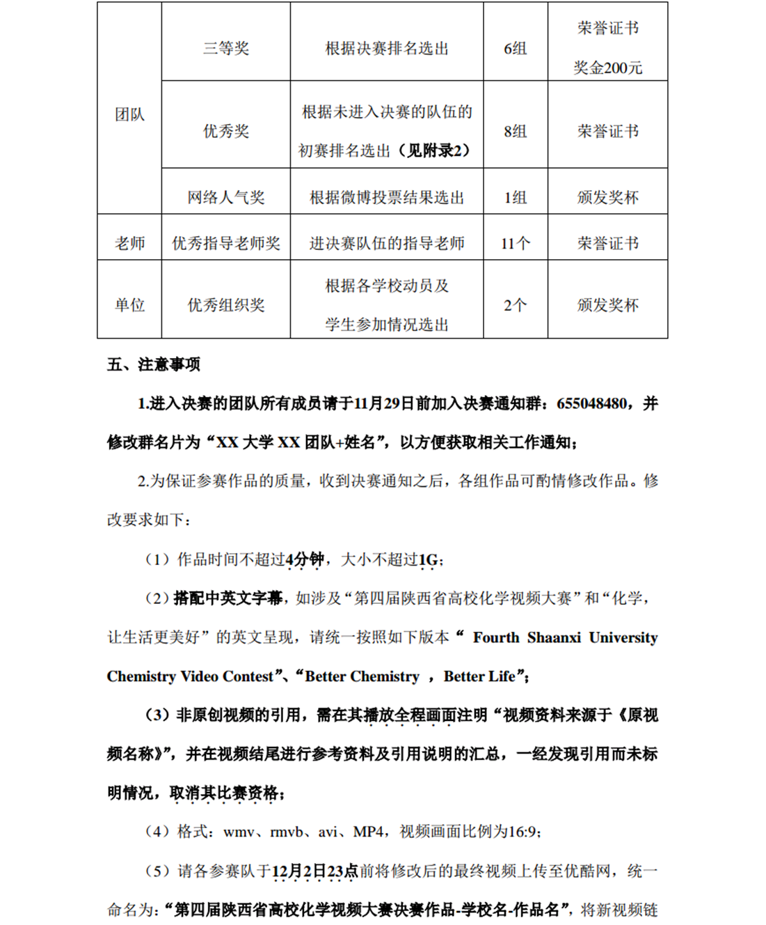 关于举办第四届陕西省高校化学视频大赛决赛的通知