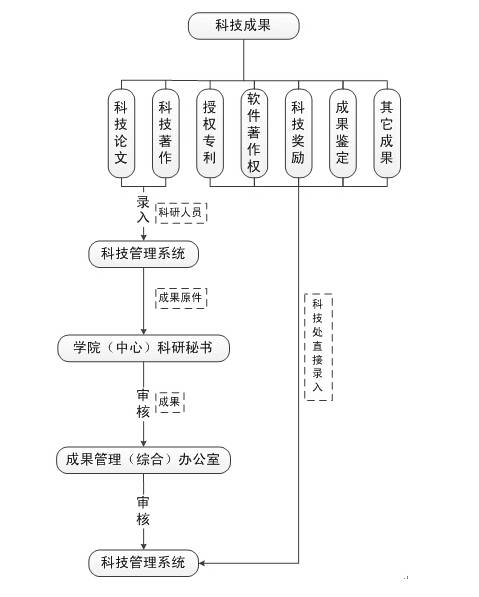 2.登记范围:包括科技论文、著作、授权专利、软件著作权、科技奖励、成果鉴定、国家或行业标准、集成电路布图设计登记、植物新品种授权等。我校为第一完成单位的授权专利、软件著作权、科技奖励及成果鉴定等不需登记,由科技处直接录入科技管理数据库。