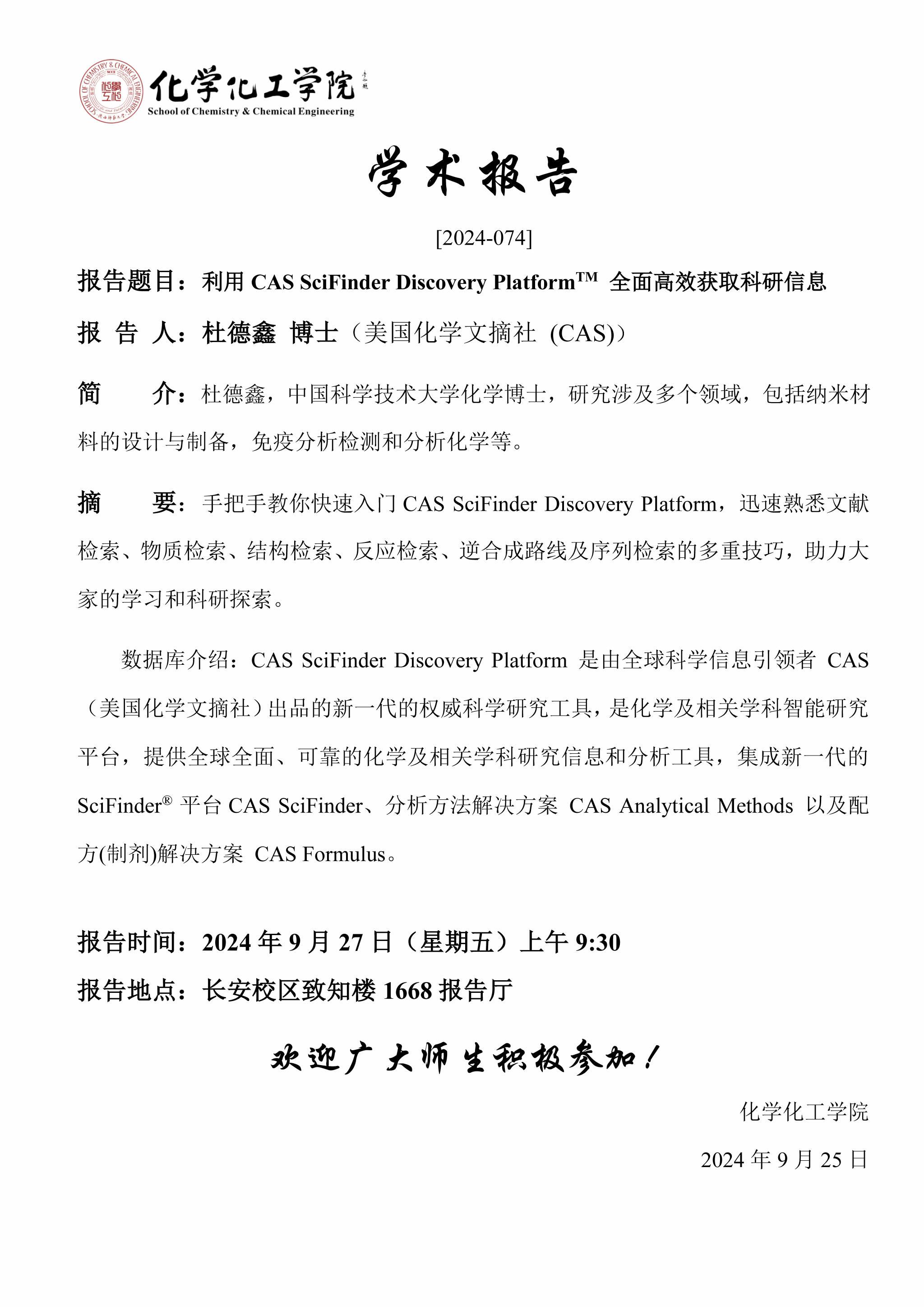 利用CAS SciFinder Discovery PlatformTM 全面高效获取科研信息