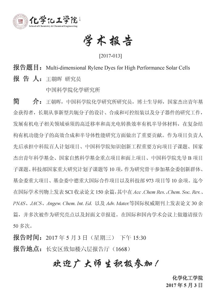 王朝晖研究员学术报告预告[2017-013]